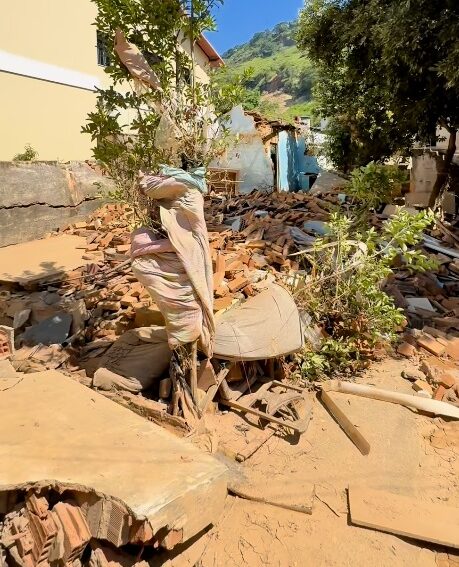 Foto: Wilbert Suave. Destroços de casas atingidas pela enchente em Mimoso do Sul.