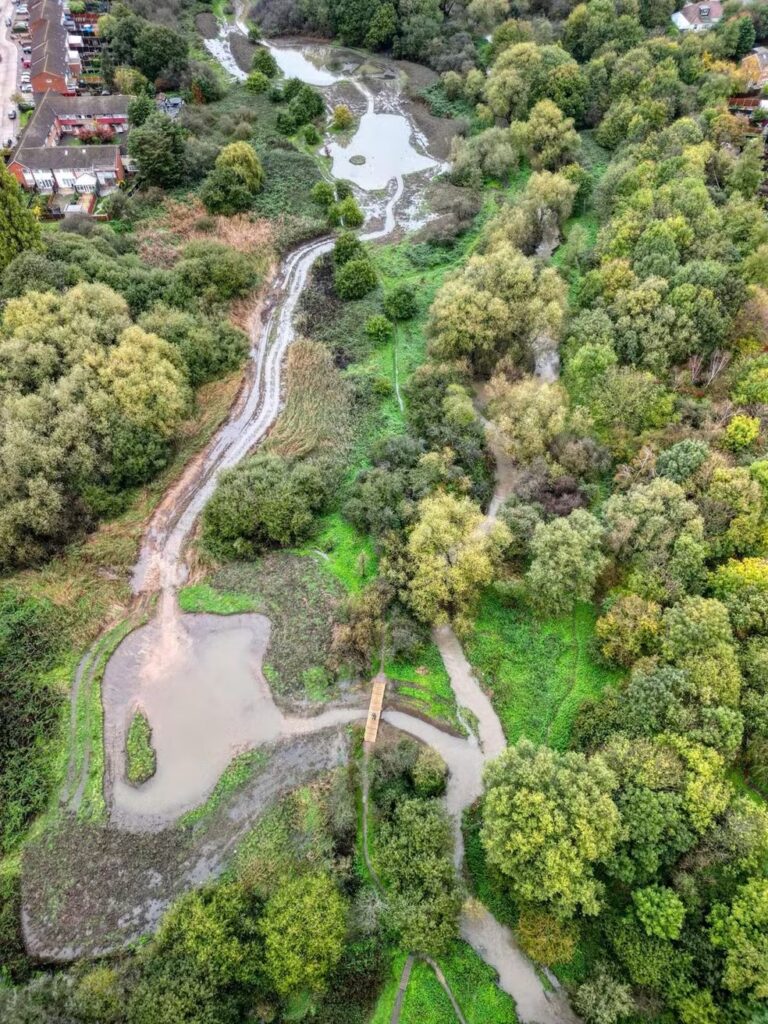 “Nós tínhamos dois principais objetivos, a criação de habitat para vida selvagem e gestão natural de enchentes, criando bacias de alagados, segurando a água para que regiões que sofriam com alagamentos ficassem mais protegidas. E tudo usando métodos naturais, adicionando madeiras no curso d’água para formar meandros, adicionando gravetos e galhos para aumentar a rugosidade do curso da água”, explicou.