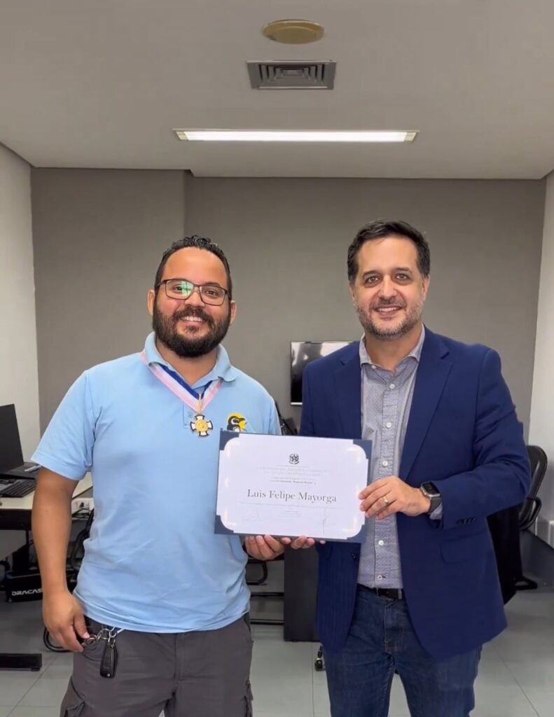 Foto: Assessoria parlamentar. Mayorga recebe título de Gandini: parceria para salvar animais marinhos e terrestres.